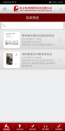 北 京保利拍卖APP应用旨在充分利用日益普及的智能手机等新型移动终端的便携性和操作体验优势, 基于苹果iOS平台开发, 以iPhone为代表的手持移动终端为传播载体, 将保利拍卖的相关信息面向所有藏家、买受人、投资人、艺术爱好者等终端用户进行发布和传播的工具和平台。用户通过iPhone随时随地快速获取相关拍卖信 息。主要功能-与栏目包括: , 焦点图览:集中表现近期即将上拍的重要精品。 保利新闻:发布保利拍卖的*动态、新闻、快讯、公告等。 拍卖预告:以图文在线浏览方式全面展示北京保利预展中拍卖会的拍品详细资料。 拍卖结果:以图文在线浏览的方式全面展示北京保利已经结束的拍卖会的拍品详细资料。 业务联系:介绍各个业务部门及业务人员的联系方式。 客户服务:主要用于了解如何委托、拍卖规则,如何订购拍卖图录、查看委托竞投书、中华人民共和国拍卖法、中华人民共和国文物保护法等基本资料。