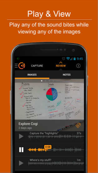 不论开会还是听课,都免不了要记一下重点。手写笔记倒显得比较有诚意,但会导致分神这个问题,因此有很多人选择了录音这种简单方便的记录方式。传统的录音应用都是全程录音这种模式,Cogi 则不同。开会伊始,你可以按下「Start New Session」,Cogi 会一直监听周围声音,但不会将其全部储存起来;当你听到重点内容时,点击一下「Tap to Highlight」,Cogi 会将此前 15s(可在设置中自行定义时长)的声音连同此后的声音一起记录下来;再次点击则会回到监听状态,长按则结束录音。有了 Cogi,你可以只录重点,但又不会错过重点。
