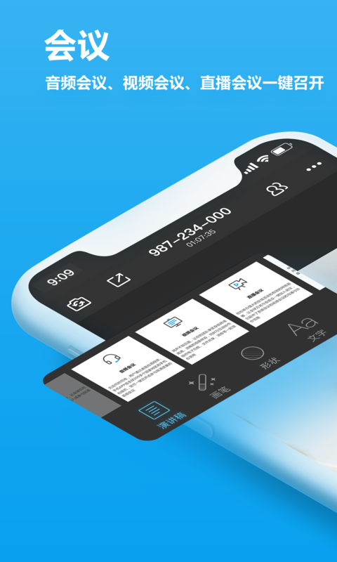 我们为您提供专业的会议和沟通服务:多种会议模式、白板协作、多方通话、企业群组、即时消息和云盘存储,让团队沟通轻松高效。