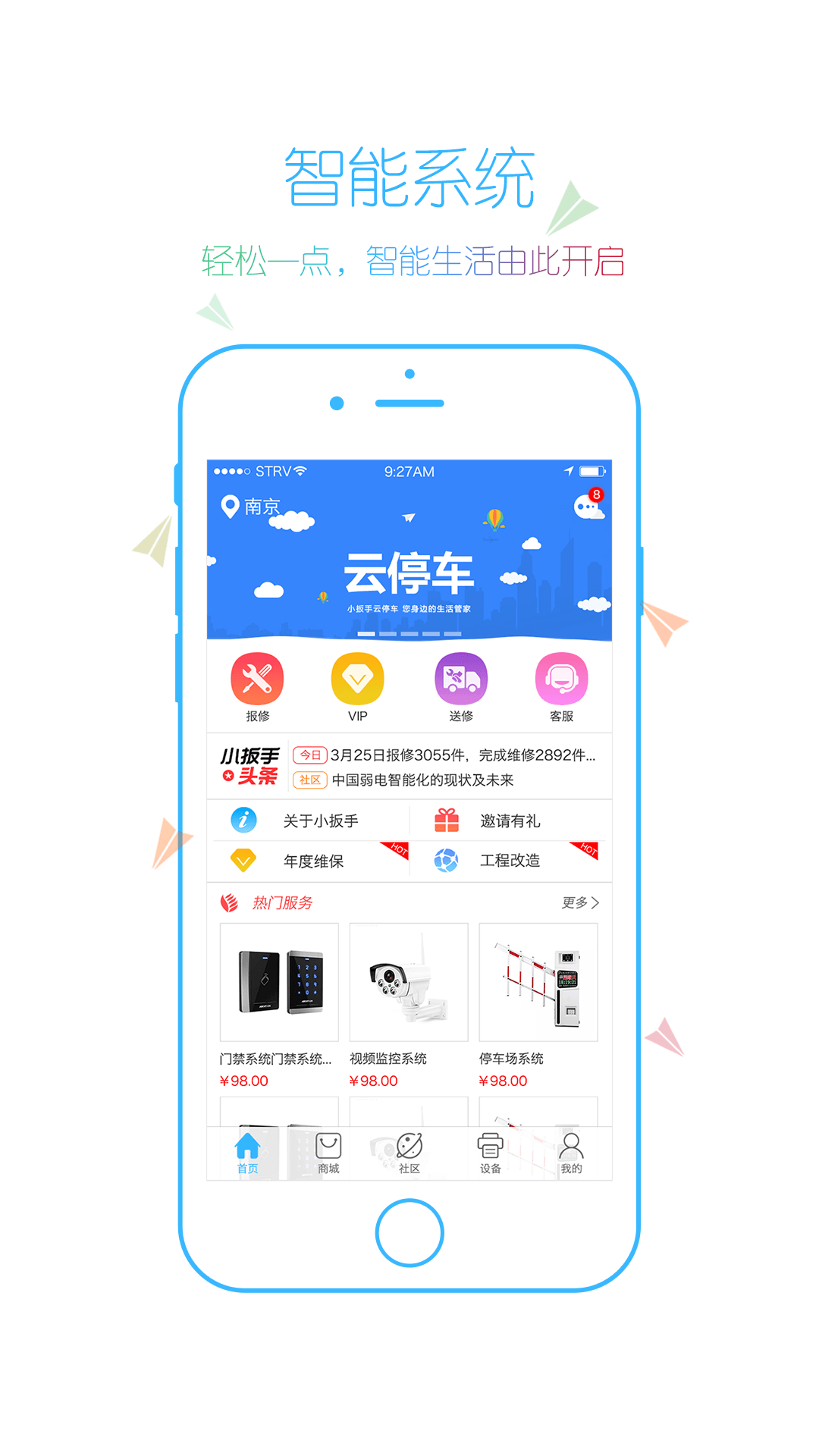 APP首页三大功能一目了然,轻松一点,智能生活由此开启!