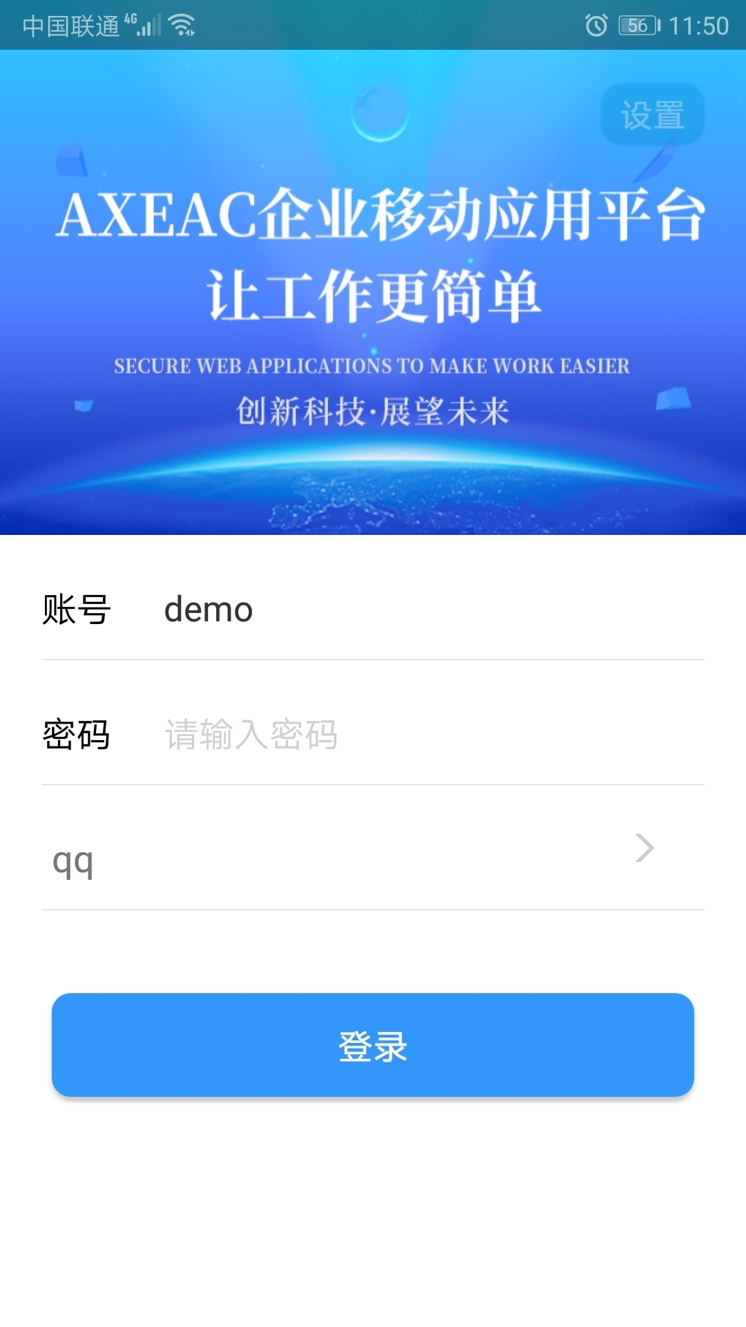 AXEAC是快虎信息专为企业打造的企业移动应用平台客户端应用,帮助企业快速数字化转型,降低沟通与管理成本,提升效率,让数千万企业提前进入到云和移动办公时代。在不改变企业现有IT系统架构的基础上,快速将现使用的各种IT应用系统移动化,带来更全面高效的企业移动应用解决方案。