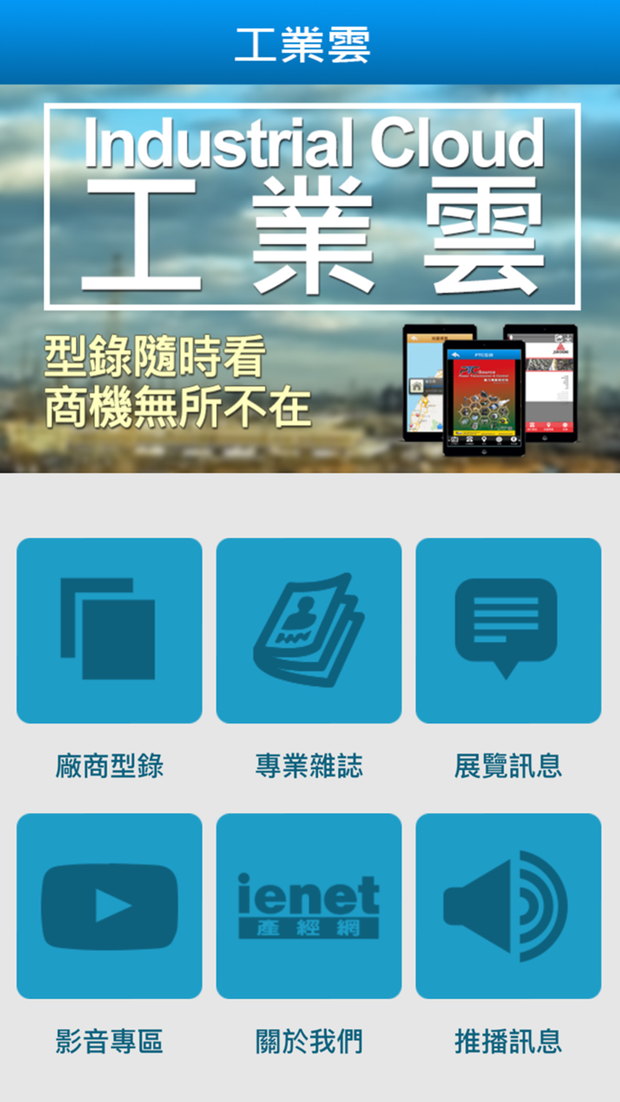 Industrial Cloud 工业云为专业的工业入口APP,提供机械及相关机械零组件之市场情报、业界动态、展览讯息、多媒体型录...等功能,包含金属加工机械设备、空压油压与传动控制机械零组件、CNC工具机、模具、刀具、塑橡胶机械、食品加工、包装印刷机械、电机电子零组件与自动化工业控制机具等等,传递工业快讯给您!