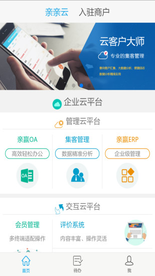 亲亲云运用移动互联、云服务、大数据技术,能够帮助企业真正实现随时随地“协同办公、集客管理、财务审批、查看经营数据、会员互动”的移动办公新方式,是中小企业应选的移动管理工具。