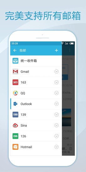 配置简单,完美支持 Gmail 等公共邮箱以及支持IMAP 4, POP 3, Exchange EAS ( ActiveSync) 协议的企业邮箱。