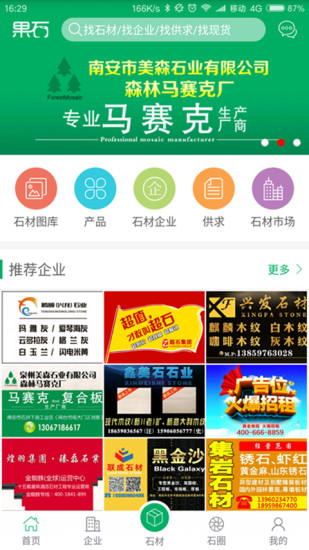 果石APP目前开设有以下栏目:石材搜索,企业查找,石材供应,石材求购,石圈交流,石材新闻 ,我的果石等。