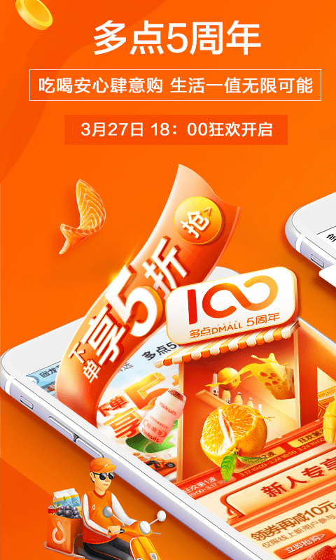 多点5周年狂欢,5分钱逛菜场、超值满减、专场折扣、爆款直降...优惠等你开启,超值无限可能,让你宅家也能买翻天!