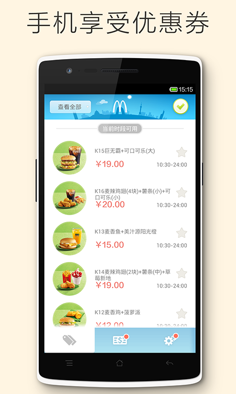 把优惠券装入手机,去麦当劳随时有优惠。
