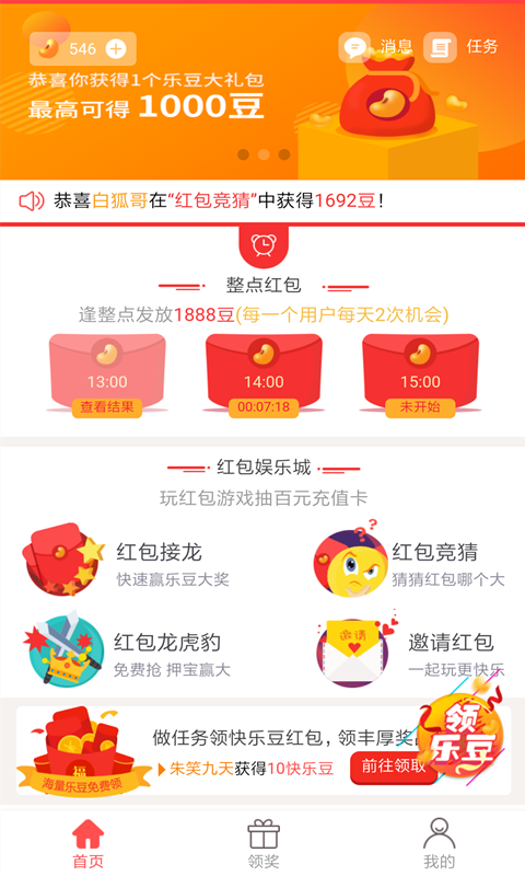 4、乐豆抽奖:赚的豆豆可以抽奖获取丰富奖品;
