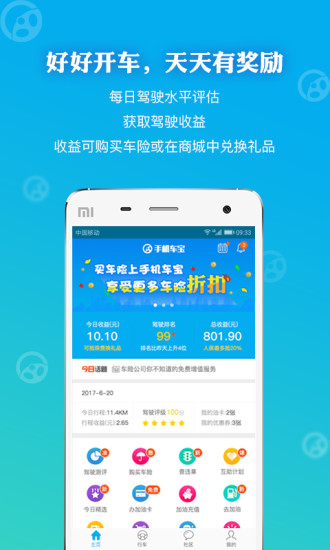 手机APP已经彻底的改变了我们的生活方式,也给我们的生活带来了无限可能。为了满足车主在汽车方面的智能化需求,手机车宝APP随时随地满足需求而不受限制。 玩转手机车宝闯关赢奖励 车主只需安全驾驶即可升级并获取奖励,如游戏闯关一般,开车从此不再无聊。新增好车主段位升级功能,手机车宝会根据您的驾驶行为进行评分,并在考核周期内,统计你的均分并判断是否能升级到下一段。而每升高一次段位,享受的优惠力度会越大,如加油奖励。 开车得高分,参与每日抽奖 车主安全驾驶,获得驾驶评级评分,大于90分即可参与抽奖。奖品种类多,5-10元加油劵,5-10元现金,10-20收益等。 油卡充值9折优惠 车主可在用手机车宝APP进行加油充值,最多可享受9折优惠。只要是手机车宝用户,即可享受充值折扣,好车主段位越高,折扣越高,你好好开车,我们给你加油。 保险公司可选择 手机车宝和多家保险公司合作,提供精 准的车险报价、透明的车险比价,让用户随时随地了解车险价格。而用户只需提交需求,手机车宝就能一键搞定。