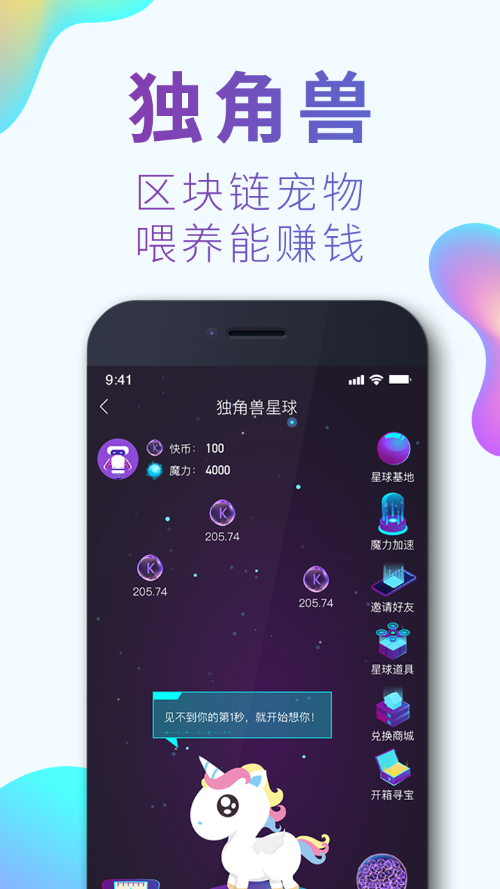 2、新增了能免费领养的区块链宠物“独角兽”,既能同你卖萌又能帮你赚钱;