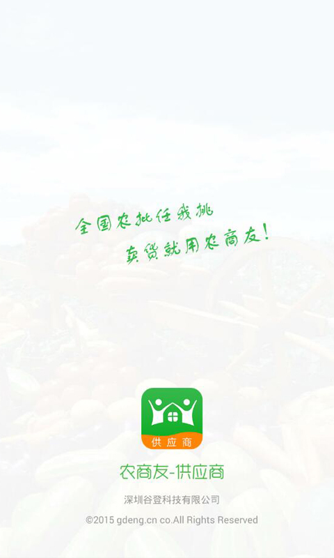 “农商友-供应商”卖家版:一个专门为产地供应商对接一级批发商的手机终端APP。农产品供应商在此可一键发布农产品供应信息,有效解决传统农产品交易中的信息不对等、价格不透明、渠道单一等问题,优化农产品交易产业链中产地至农批市场环节,帮助产地种养大户、农产基地、农产品合作社解决销路,为产地供应商提供农产品信息发布等服务。