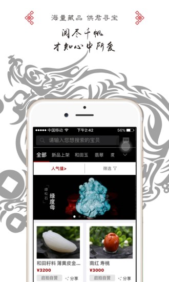 在启拍,您可以通过竞价或者一口价的方式结缘心仪的艺术品。启拍的定位为苏工艺术品交易平台,苏工以雕刻细腻灵动见长,一直代表中国雕刻工艺的较高水平。