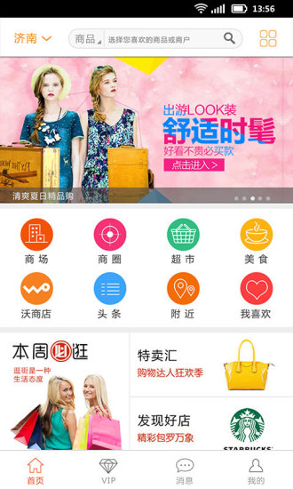 商城、商圈、超市、美食等六大模块,定位清晰明确,保证提供购物信息,逛街购物更有针对性。