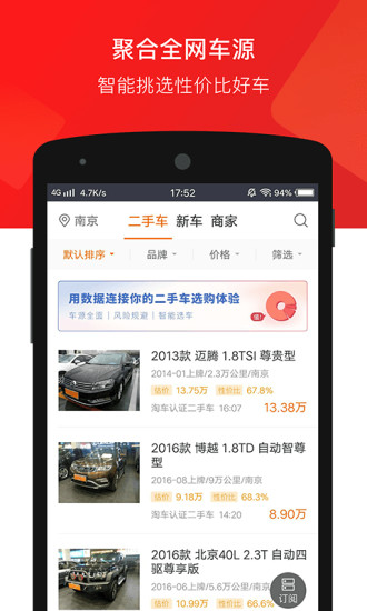 【淘车】汇聚各家车源信息,浏览的同时还能比价,各家价格一手掌握