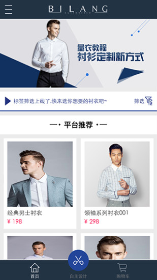 该APP内置了丰富的面料,包括商务、时尚、休闲等等风格;时尚多变的样式搭配,令你搭出各种各样风格的款式,满足用户不同场合,不同需求下的款式要求;还有各种尺寸的录入方法,保证穿上合身、舒适;2完全有用户自主的衬衫设计功能,简单易用,结合精致的3D模型,让有品味的你在闲暇时拿出手机便可在弹指间为自己量身定制一件性价比高、个性时尚、合身舒适的衬衫。