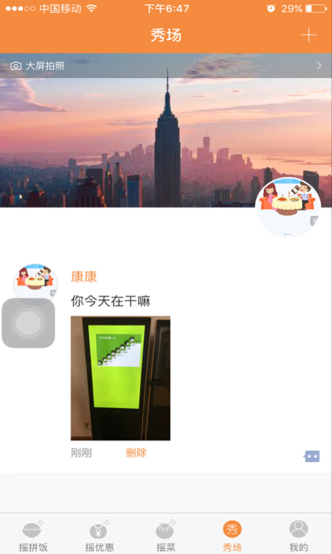 本版本,我们充分考虑了客户的体验,打造了拼饭、摇优惠、要菜、秀场等功能。每个一个版块的功能都经过测试,满足使用要求,我们后续再改进,更适合使用。