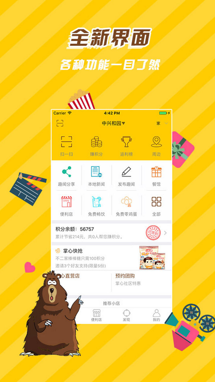 【掌心社区】掌心社区是解决百姓本地社区资讯、购物、生活娱乐为综合的平台。它基于地图LBS应用将社区电商、终端配送、娱乐互动、消费返利为整合,以社区便利店为核心,为百姓提供便捷低价的消费体验,而快递代存、废品回收等业务也让每个便利店成为社区生活的加油站!