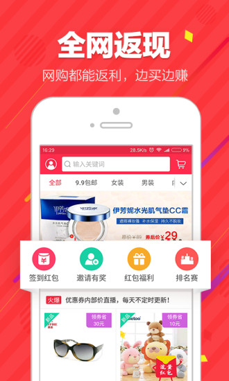 汇集知名购物频道,打造一站式App,边购物边赚钱,返现高达90%哦!