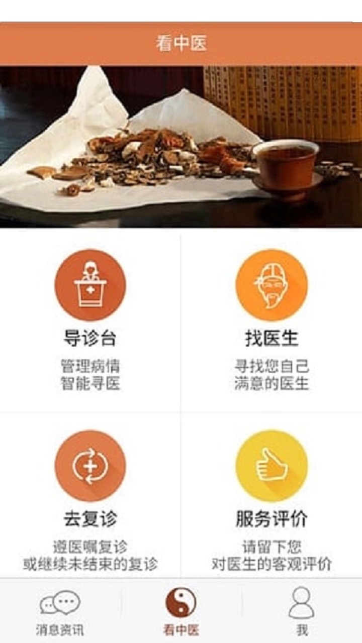 2.看中医主界面的各入口,增加引导提示语。如导诊台的引导提示“管理病情,智能寻医”