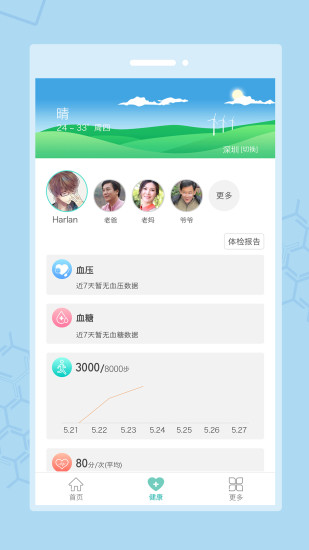 【血压监测】绑定智能健康设备,数据通过GPRS远程传输,让您及时了解家人的血压健康状况;