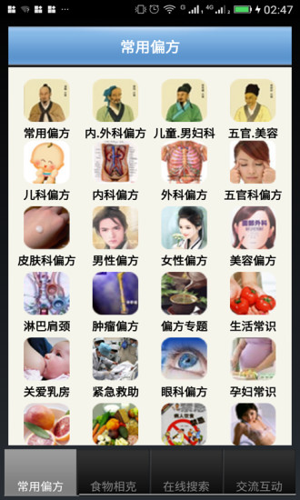 本软件经过专业中医人士进行数据筛选而集成的中医偏方宝典,具有上千种中华医术和民间广为流传的偏方;本应用对健康而言,望多多珍藏,忠心祝愿天下人身体健康,万寿无疆。