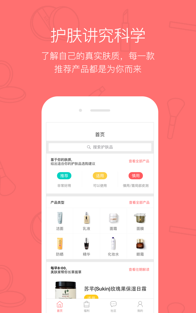用开放和共享的精神为你带来更便利的护肤品选购体验,让为自己的肤质找到适合产品变得非常简单。