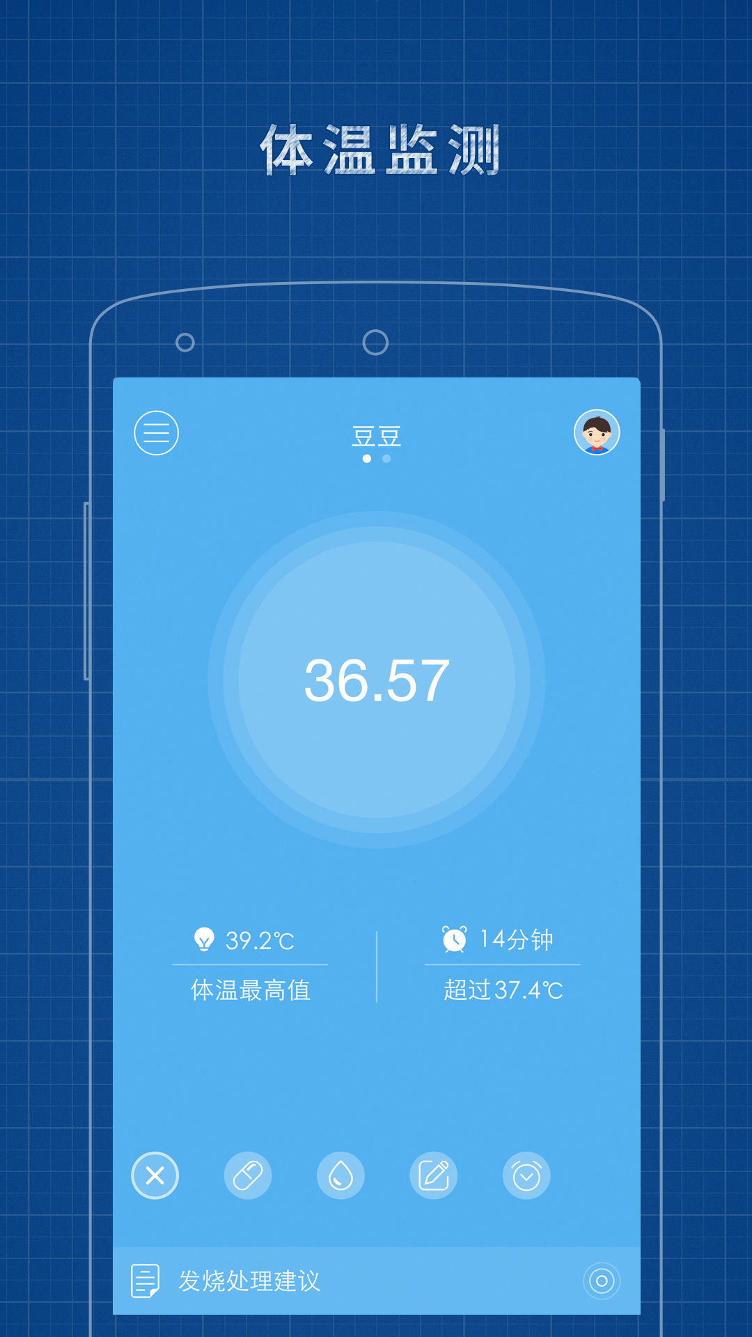 发烧总监APP全新升级,重新设计了界面,还加入了体温分析的功能,能显示每一次发烧的高温度以及持续时间。体温变化趋势图将体温曲线与退烧处理方法结合在一起,能让医生更客观地了解宝宝病情变化。同时有多个宝宝的家庭,一台手机也能连接多台发烧总监智能体温计了!