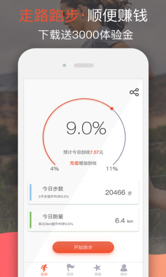 3. 运动增加收益:走路、跑步,运动量越大,运动利率越高,相应的收益也就越多;