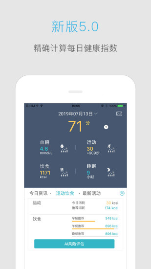 我们有饮食,运动,血糖,血压,睡眠等各项数据的录入,分析,预警功能。