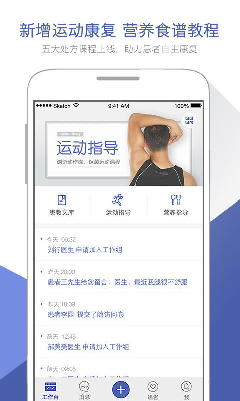 “术康医生”是一款基于移动终端的“全流程患者管理工具”医疗软件,为医生在患者教育、在院管理至术后康复指导、随访数据统计分析的全流程工作中提供专业协助,同时以数据为依据为医生/科室打造数字化品牌。