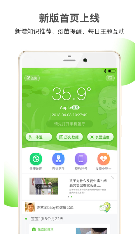 体温推送:家人给宝宝测温后,即便身在千里之外,也能快速收到体温推送