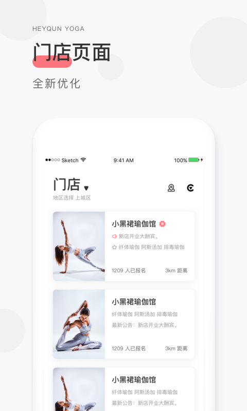 「小黑裙瑜伽」互联网瑜伽连锁门店的形式,可以轻松找到身边的瑜伽馆。无论你是想工作日趁着中午休息时间来一次肩颈舒缓,还是下班时间或者回家时来一次睡前瑜伽,全天四个时间段的排课都能让你随时瑜伽。