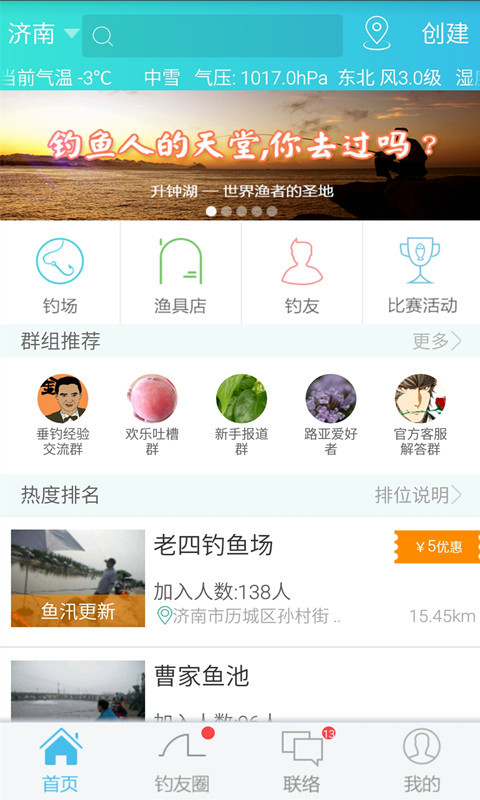 钓友汇,钓友交流聚集地,济南钓鱼类信息展示APP,是一款集钓鱼信息整合、兴趣交流、为广大钓鱼人提供休闲垂钓服务为一体的钓鱼APP,以“掌握天下鱼势”为口号,随时帮你发现钓场动态,掌握实时钓鱼信息,同时知名钓友分享经验,教你新式钓鱼技巧,是为钓鱼人量身打造的朋友圈。