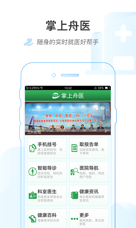 “掌上舟医”是舟山市人民医院以移动互联网、云计算、物联网、大数据等特点“智慧化”信息服务。“掌上舟医”旨在医院现有服务基础上,通过手机挂号、取报告单、科室医生、智能分诊、医院导航、健康资讯、健康百科等多种简化患者就医流程功能,减少就医等候时间,改善患者就医体验,提高医疗服务质量。