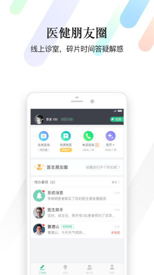 医健朋友圈(专家版)是一个轻熟人医患沟通软件等。云上工作室,碎片时间答疑解惑低门槛、更便捷。每个医健朋友圈配备一个专业小助手,同时提供线上自媒体推广服务,管理、推广更省心!