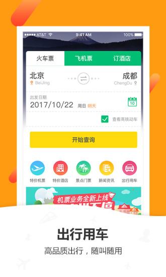 全新改版升级,火车票、飞机票、酒店一应可订,智能的出行计划查询,方便的一站式订购,给您的出行提供全方位的超便捷服务。操作简单,随买随走!
