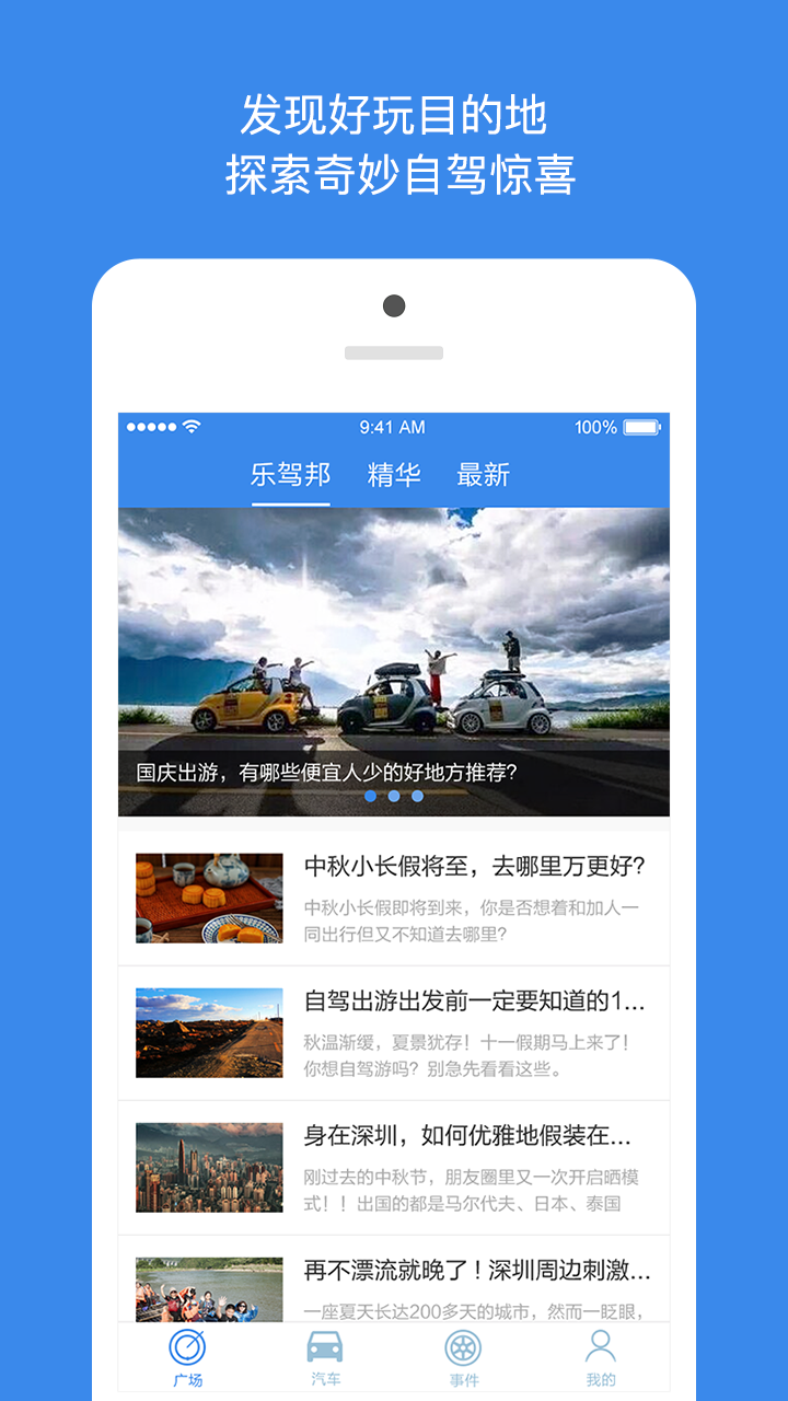 3、增加自驾旅游内容模块—乐车邦。为车主提供节假日自驾旅游好去处,提早做好功课自驾不烦恼;