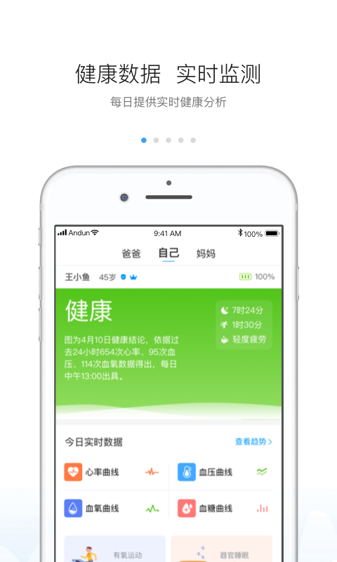 【健康管理】通过安顿APP推送实时健康数据,为用户(用户APP)和医生(医生APP)提供健康管理和诊疗建议。