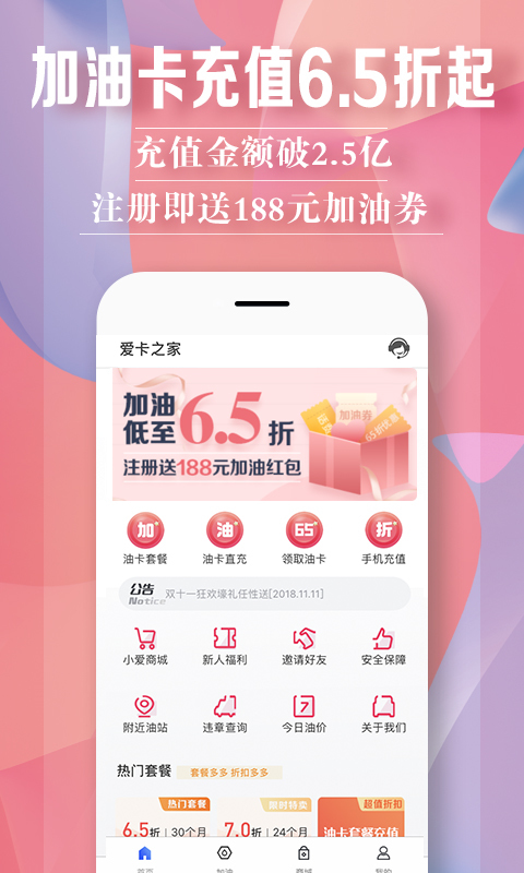 爱卡之家——中石化,中石油加油卡充值套餐6.5折起,支持及时充值及时到账,安全便捷省心,是滴滴,嘀嗒出行,首汽约车,神州专车,易到用车,货车车队,大巴等车主的充值营业厅。