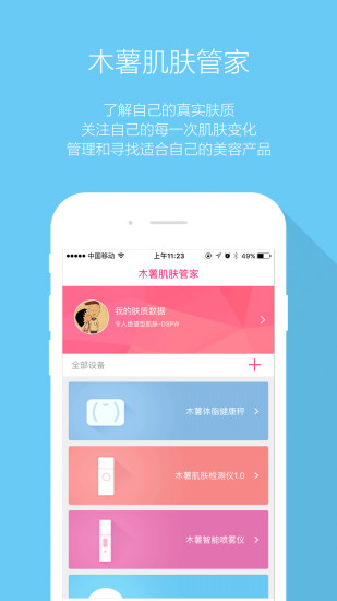 木薯是中国的上市智能美容仪器品牌,专注于研发简洁好用的智能硬件、美容仪器,通过分析收集到的数据,为女性生活爱好者提供产品对比、购买方案、护理提醒和健康建议,更好进行美丽管理。我们的软件,将妆品管理、木薯肌肤检测仪、木薯体脂健康秤集成到一起,从此开启智能美容新时代!