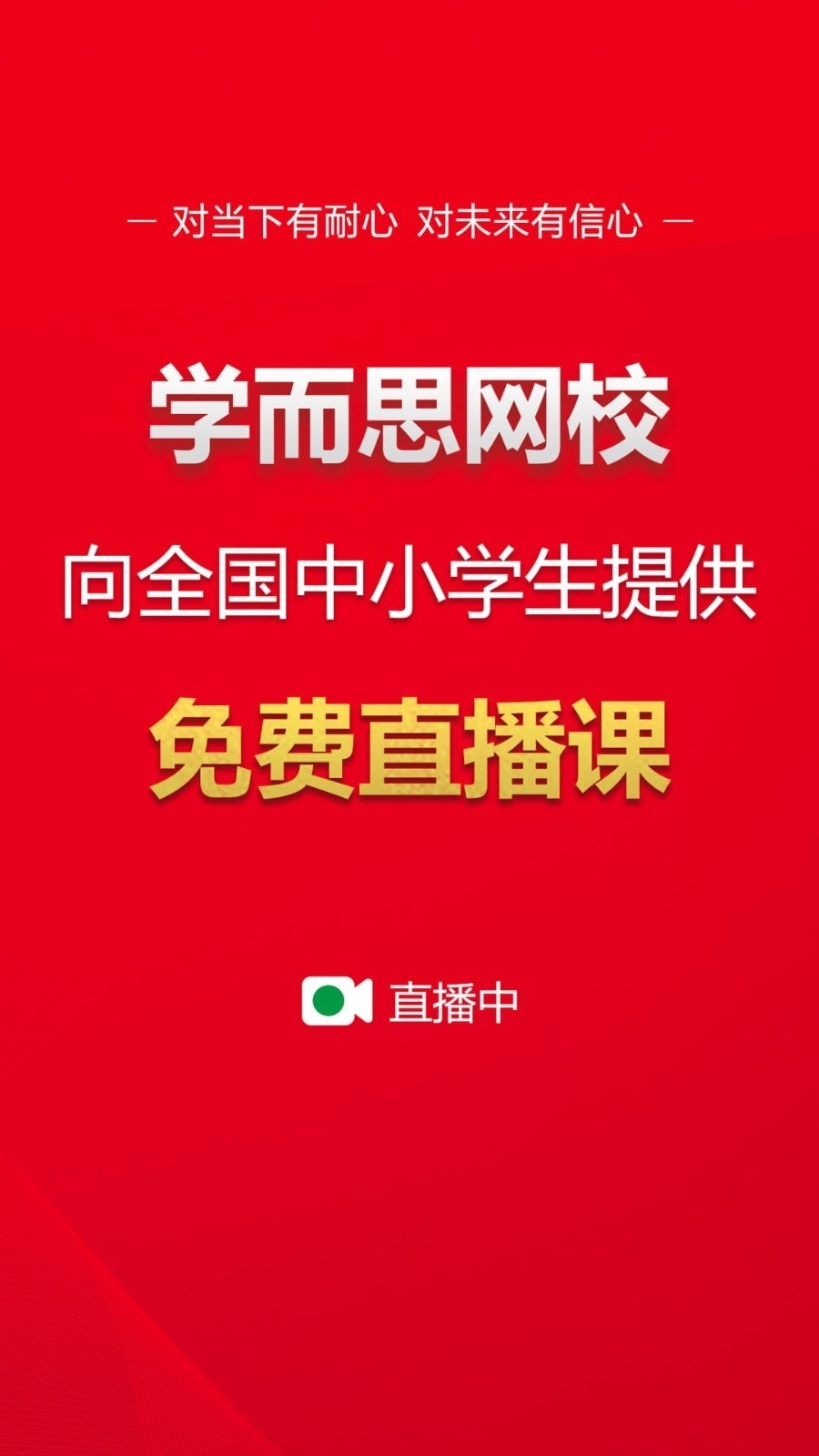 “停课不停学”,学而思网校向全国中小学生提供免费直播课,覆盖小初高各年级全学科,并提供免费电子课程讲义,百位清华、北大、哈佛毕业名师授课,2月1日开始上课,课程安排详见APP首页。对当下有耐心,对未来有信心!
