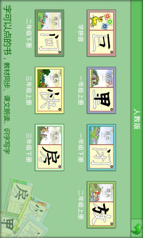 点字书,顾名思义,就是字可以点的书。为学龄儿童改善阅读、学习汉字而设计。与小学低年级教材同步,还有适合幼儿园、学前班的内容。是孩子熟悉课文、识字认字、朗读背诵的好伙伴。画面精良,色彩饱满,汉字足够大,便于阅读和点击。点击汉字,不仅有拼音和词组,还能一笔一画按规范笔顺动态书写出来,帮助孩子学习汉字及书写。句子、拼音和词组,都配有真人朗读,发音标准。并且,包括生字的拼图、猜字等识字游戏,画面优美生动,在汉字的拼拆中,潜移默化地认知记住生字。另外,配合生字、拼音和组词的测验功能,快速方便地检查孩子的识字效果。