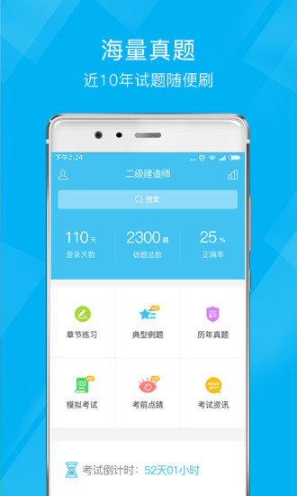 「二建泉题库」包含了上万道历年二级建造师综合考试经典例题,具有智能出题、专项练习、经典例题、模拟考试、考前点睛、错题复习、收藏题目、练习笔记、考试资讯等功能,配上二级建造师专家精编的答案解析,帮你巩固每一个考点。系统练习后模拟真实考试,助你评估实力,完美冲刺。随时随地手机刷题涨分,「二建泉题库」助你实现建造师梦想。让做题更高效!让学习更简单!让考试更轻松!