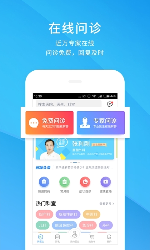 (1)【快速问诊】专业医生一对一实时在线服务,免费快速的解答您的健康问题;