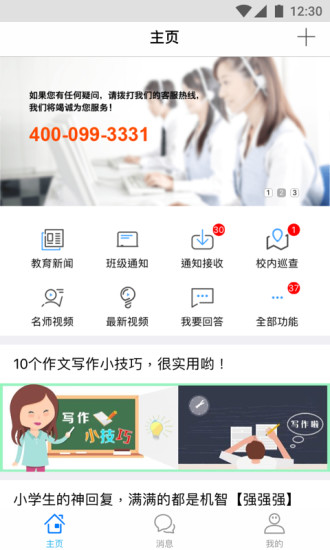2.通知接收:获知学校发给自己个人或班级年级的通知;
