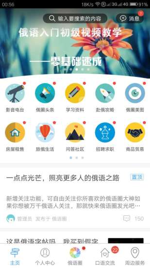 俄语俄国圈新版本终于出炉,颜值高,功能多,满足你对俄语,俄罗斯的一切渴望!还在为学俄语犯愁?俄圈资料多而全,万千俄语人一起学!俄罗斯本地生活服务通通都有,租房售房,商贸物流,二手买卖,求职招聘,各种需求,一个俄语俄国圈app全搞定!还等啥,快来加入俄语俄国圈大家庭!