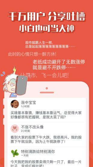 民间草根炒股达人即时在线,千万炒股小伙伴吐槽大会,随时随地分享赚钱秘技,悲催经历,股票内幕,小道消息,你要的绩优股,潜力股都在这里;
