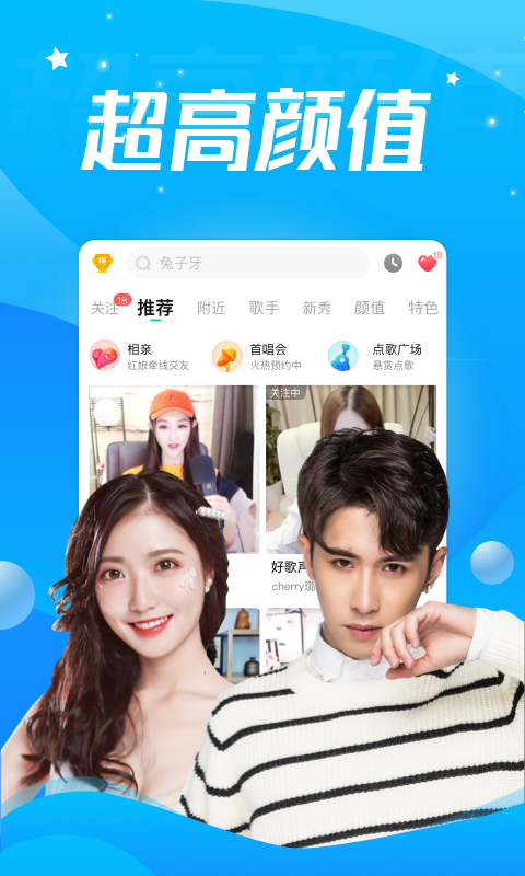 用音乐展示自己,用歌声与观众互动。这里是唱歌好听的直播舞台,汇集各类型歌手,拥有海量原版伴奏,还有演唱会、录音棚、KTV等不同音效,秒开的视频直播体验,带给观众全新的音乐互动盛宴。