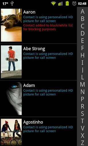 阻止个别接触。联系人管理器将显示在接触受阻,容易管理的红色字母。全球启动/关闭呼叫阻塞,覆盖个别接触块的状态。有用的,如果你想阻止人们在某些时段,但不想单独疏通他们。基于传感器的行动