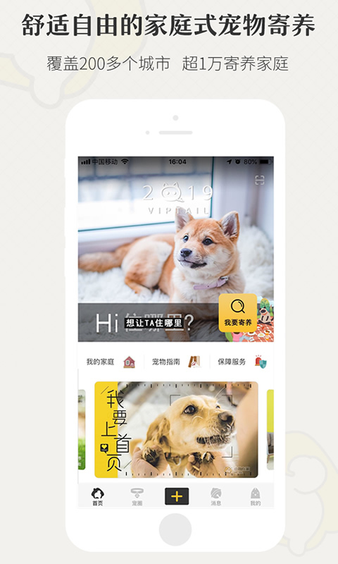 家庭式宠物寄养为养宠人、小狗在家倡导开放共享的精神,全力打造潮牌的宠物生活。